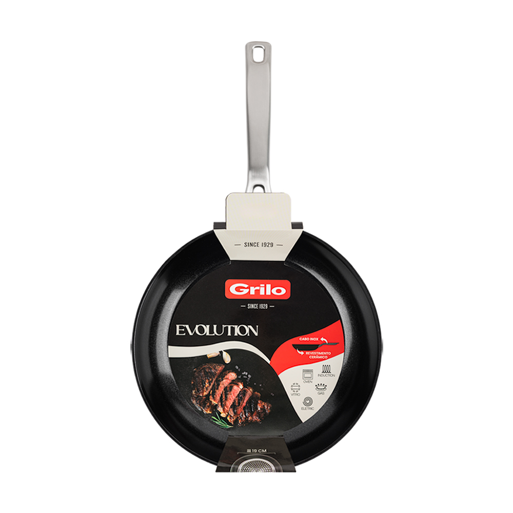 Linha Evolution, artigos de alta qualidade, com revestimento ultra antiaderente. Apto para todo o tipo de fogões, indução, gás, vitrocerâmicos, elétricos e forno. Artigo em alumínio forjado com revestimento ceramico de alta qualidade, cabo em aço inoxidável.