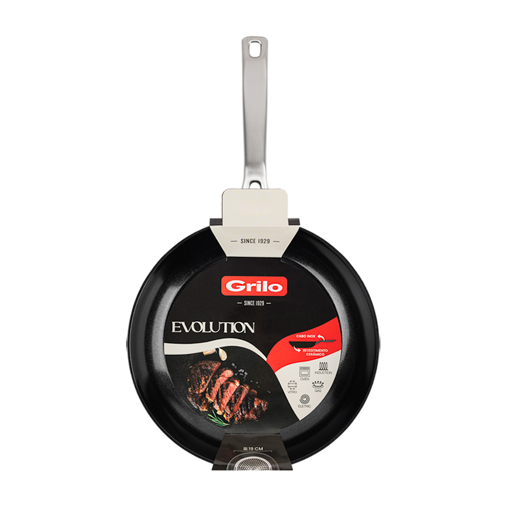 Linha Evolution, artigos de alta qualidade, com revestimento ultra antiaderente. Apto para todo o tipo de fogões, indução, gás, vitrocerâmicos, elétricos e forno. Artigo em alumínio forjado com revestimento ceramico de alta qualidade, cabo em aço inoxidável.